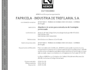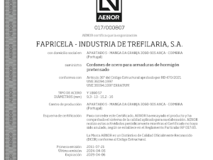 AENOR – Cordones de acero para armaduras de hormigón pretensado