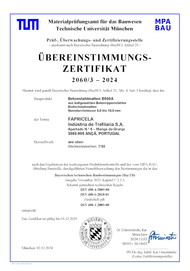 MPA-BAU-TUM – Betonstahlmatten B500A