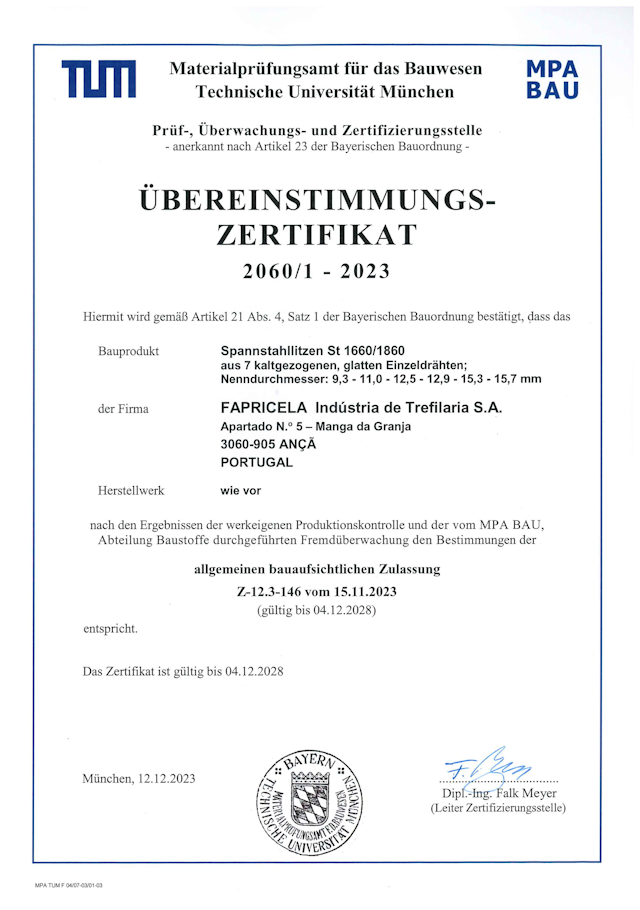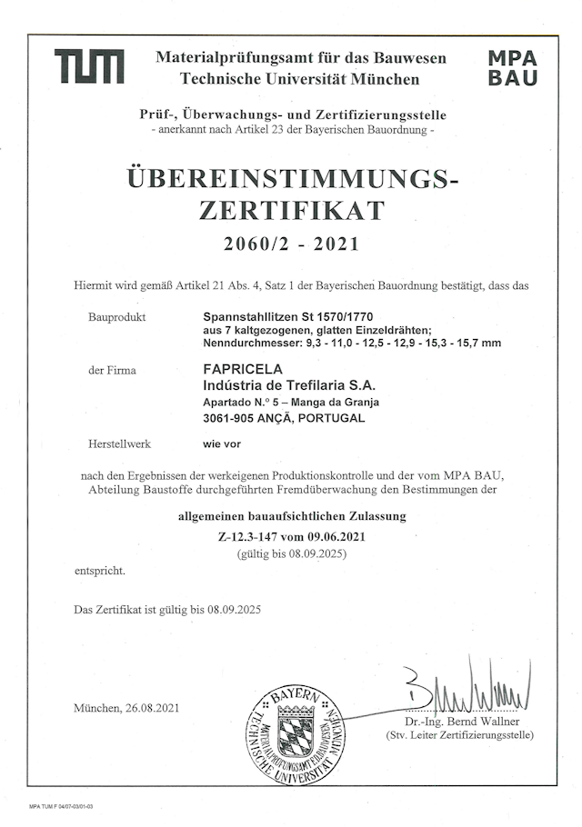 MPA-BAU-TUM – Spannstahllitzen St 1660/1860
