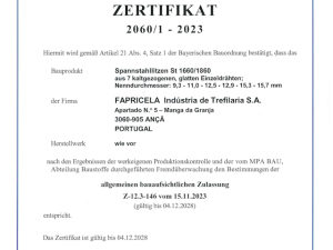MPA-BAU-TUM – Spannstahllitzen St 1660/1860