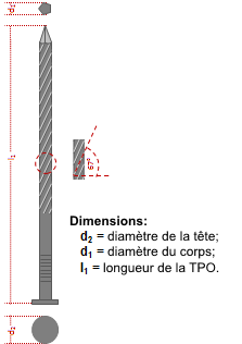 | d1 (mm) | l1 (mm) | d2 (mm) | Géométrie |
