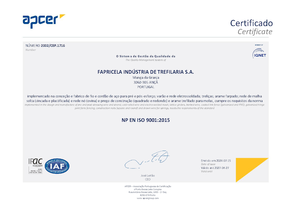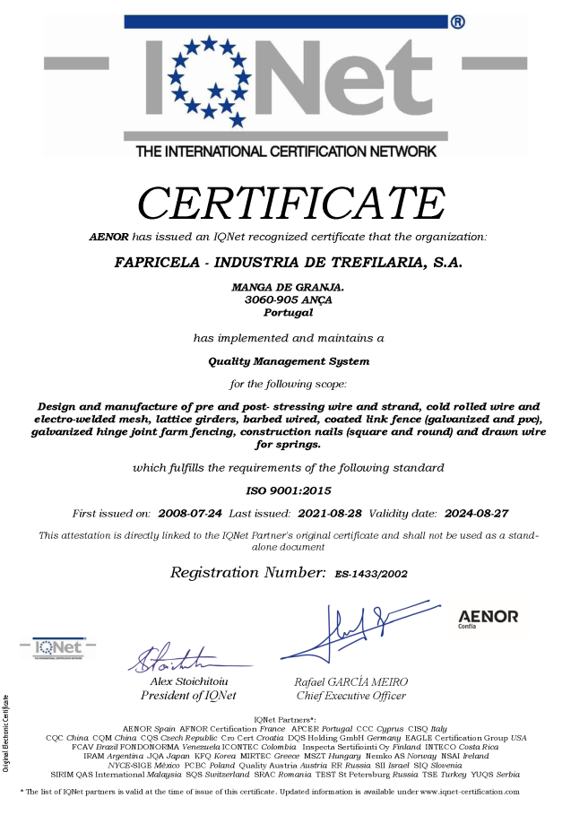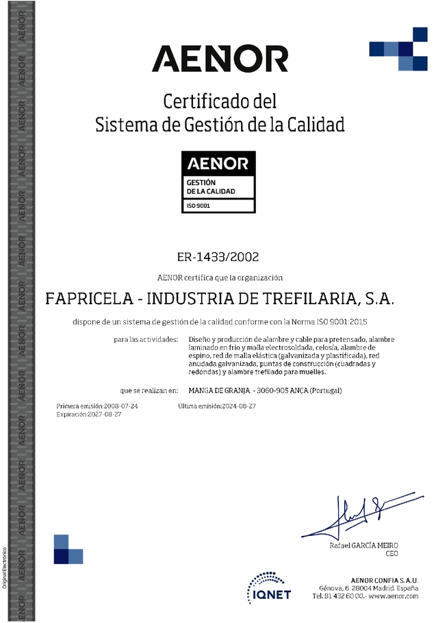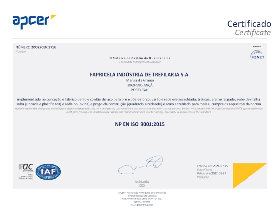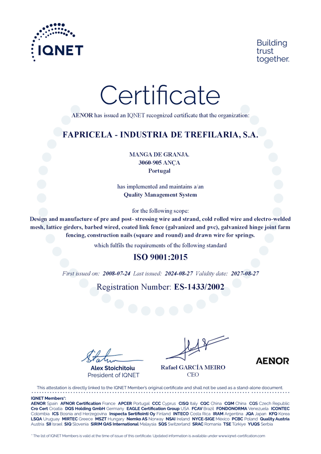Certificats ISO 9001